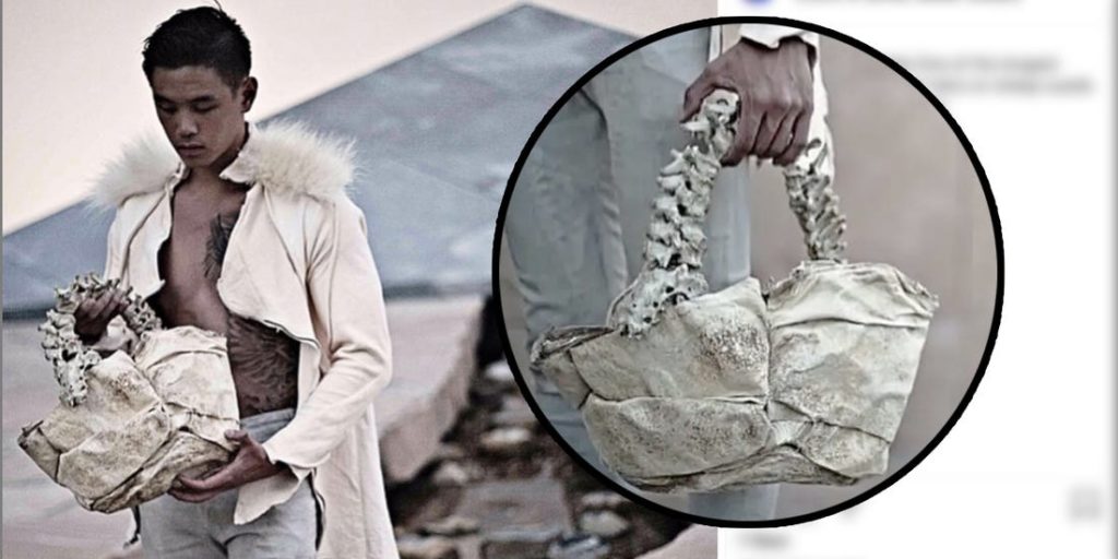 So we wish we were joking, but right below this, you are looking at the “ethically sourced” human child spine and alligator tongue bag from Arnold Putra and his avant-garde fashion label.
