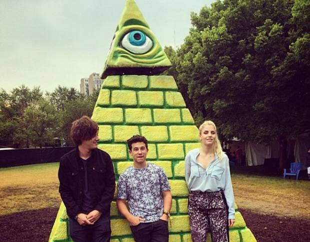 The conspiracy mill went into overdrive speculating over whether the band had joined the elusive cult, after they posed in front of a giant yellow pyramid sculpture, topped with the all-seeing eye, at Lollapalooza festival in Chicago over the weekend. They posted the image, seen above, via their Facebook page, only to receive several comments rumoring their connection with the “new world order” group.