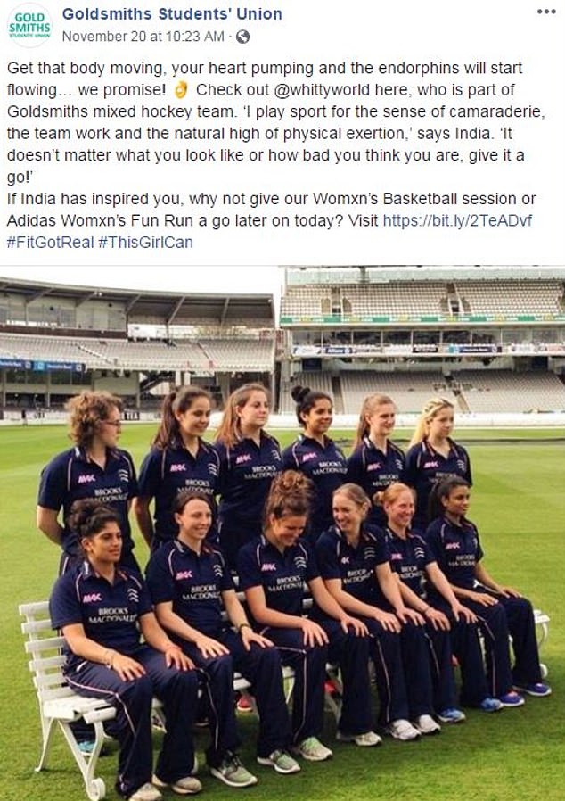 A spokeswoman for the Goldmsmiths Student Union said: ‘Womxn is used to demonstrate our commitment to inclusiveness. No student has complained about its use.’