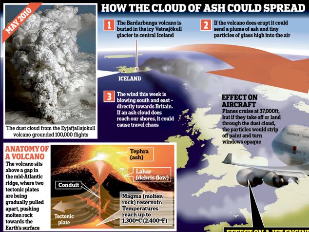 If Bardarbunga erupts travel companies have been warned to prepare for a repeat of the chaos seen when Iceland’s Eyjafjallajokull volcano blew in 2010. A huge dust cloud shut down much of Europe’s airspace for six days, grounding 100,000 flights and affecting more than ten million people.