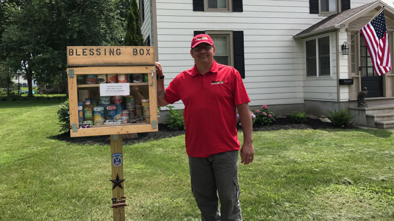 Little free pantries allows you to serve others without being present and helps those in need maintain their dignity. Espinoza surmises that the Watertown, NY community is using his own box at night to avoid humiliation. Now he is helping others make boxes.