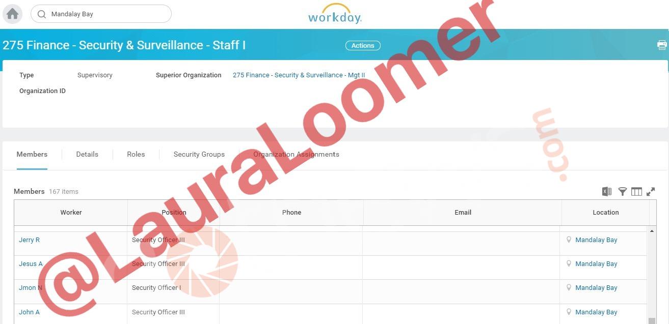 “While on the ground in Vegas, I have exclusively obtained a picture of the ‘Workday’ log of security and surveillance staff at Mandalay Bay as of October 10 whose names begin with the letter J,” Loomer told GotNews. “‘Workday’ is the official database used by MGM to keep track of employee profiles. Less than 24 hours following the LVMPD press conference yesterday in which Jesus Campo’s timeline and role in the shooting changed substantially, he has been scrubbed from the employee system as a security guard.”