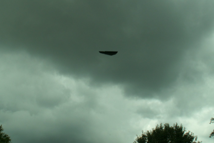 “He was scared to drive underneath not knowing whether it had just cloaked and was still there. The whole time it was still above the freeway in perfect view, no movement at all. We came home and I drew a sketch. I couldn’t make out every detail of the object but I remember white lights outlining the bottom of the craft, panel-like shutters if you want to call them on the side. Very hard to describe. I’ve never seen anything like it. It’s like paper overlapping paper.”