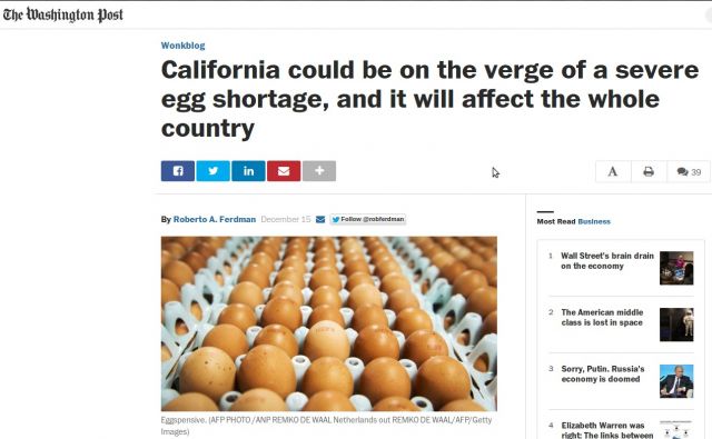 From GLP and the Washington Post: A Sign already posted in my Midwest Grocery Store blames California’s new idiotic law and Mexican’s buying our exports by the droves. The shortage will continue into the first of the year at minimum and prices are skyrocketing.