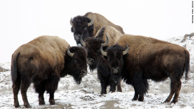 Almost 5,000 bison live in Yellowstone, located mostly in Wyoming and the only place in the United States where the animals have lived continuously since prehistoric times.