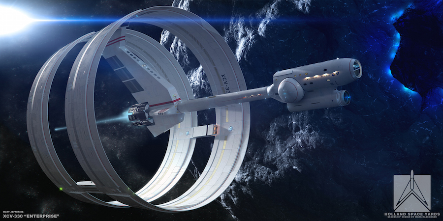 The drive’s inventor, Guido Fetta calls it the “Cannae Drive”, which he explains as a reference to the Battle of Cannae in which Hannibal decisively defeated a much stronger Roman army: you’re at your best when you are in a tight corner. However, it’s hard not to suspect that Star Trek’s Engineer Scott — “I cannae change the laws of physics” — might also be an influence. (It was formerly known as the Q-Drive.)
