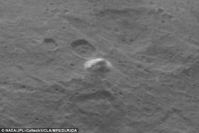 The latest images taken by the Dawn probe has also revealed a three-mile high pyramid shaped structure.