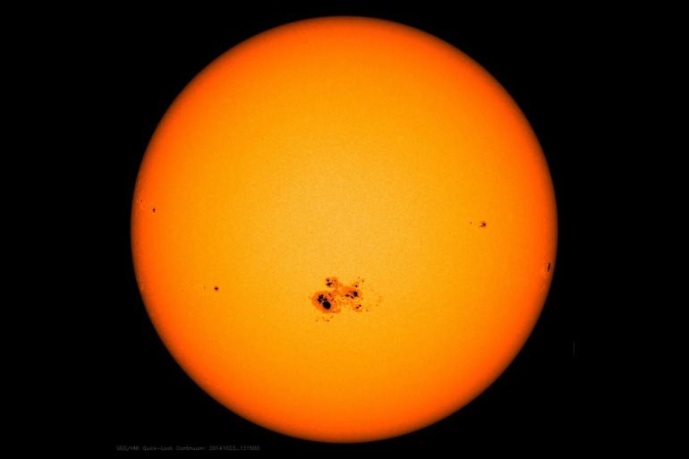 According to an article from IBTIMES.com: NASA’s Solar Dynamics Observatory, or SDO, has captured an image of a gigantic sunspot, which rotated from the left side of the sun to the right on Oct. 18. The sunspot soon grew to be the largest active region observed in the current solar cycle — a periodic change in the sun’s activity and appearance — which began in 2008.