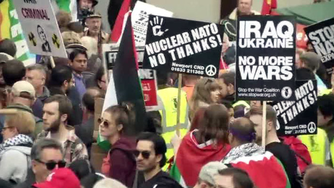“Nuclear NATO – no, thanks!” or “Iraq, Ukraine – no more wars” read the numerous placards as about 400 protesters took in a march on Saturday against the upcoming NATO summit.