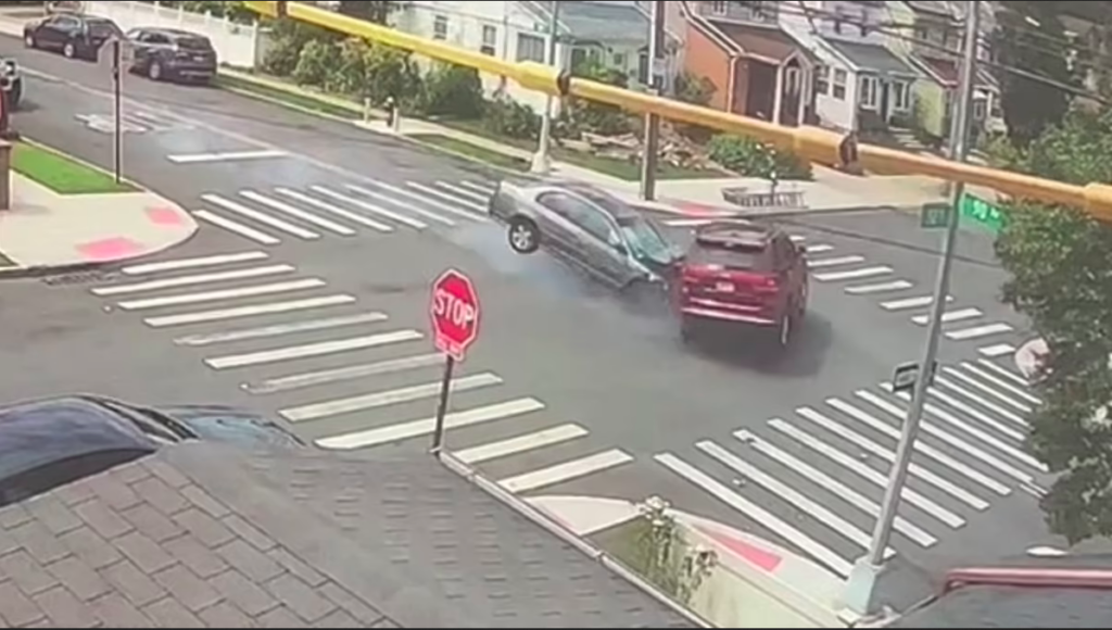 Dramatic footage showed him T-bone a red SUV heading north on 212th Street, injuring both himself and the other driver.