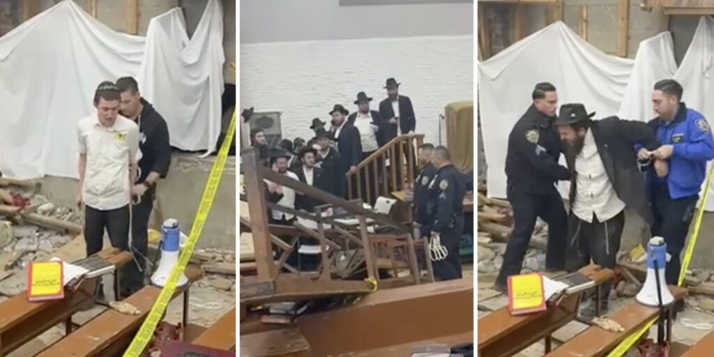 A riot broke out and a dozen men were arrested at the New York City synagogue that serves as the headquarters of the Orthodox Jewish Chabad movement when Jewish students tried to stop the NYPD and a team of construction workers from sealing off the illegal tunnel system dug beneath the building, reportedly to connect the synagogue to the site of a Jewish men’s ritual bath.