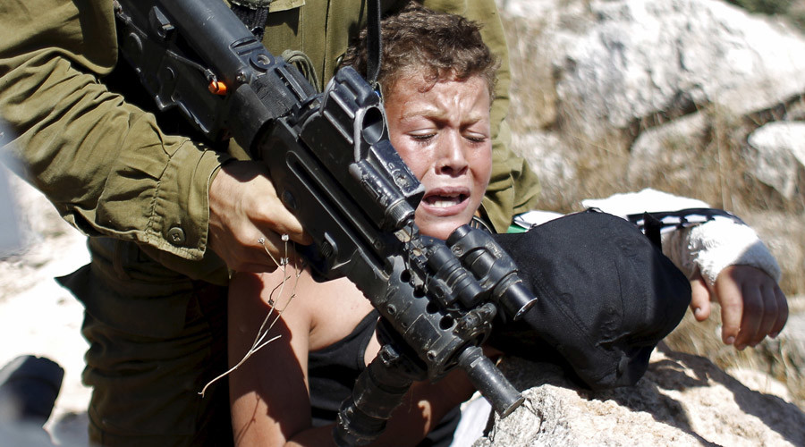 A viral video has emerged of an unnamed Israeli soldier chasing down a boy whose arm is in a sling outside the village of Nabi Saleh, a frequent flashpoint for protests. As he pins the screaming 12-year-old Mohamed Tamimi down, the soldier is set upon by the boy’s family, including his mother, aunt, and sister.