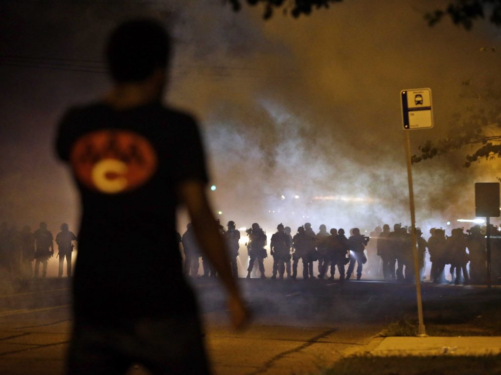 CNN.com early this morning reporting, “Ferguson, Missouri (CNN) — As the rain dropped and smoke fell, the fists shot up. Police fired smoke canisters on protesters defying a curfew issued in order to prevent mayhem in Ferguson, Missouri, where the police shooting of an unarmed black teenager sparked a week of protests and sporadic looting.
