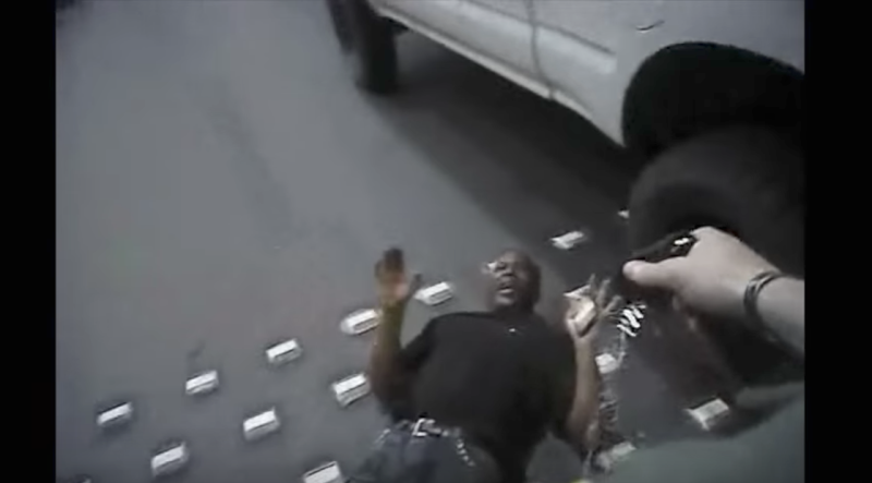 An officer’s body camera video, as well as outside security camera footage, feature the chase and attack on the unarmed man. At first Farmer is seen running from a police officer, later identified as Kenneth Lopera, and approaching a white pickup when the first stun gunshot comes.