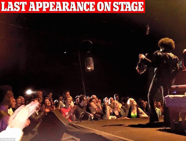 (4) Prince just finished two performances [below] in front of thousands of people who claim he was healthy, alive and sharp. Opiate addicts are not healthy and sharp and cannot sing and dance.