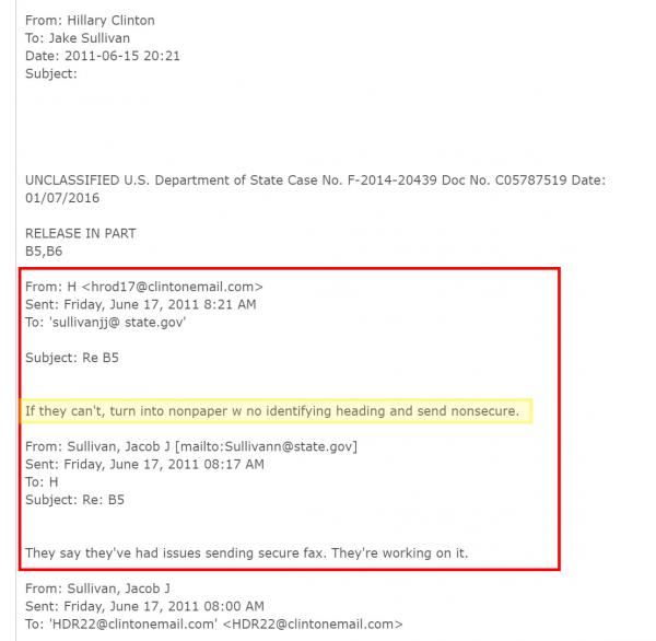 The serious implications to Hillary Clinton in regards to this email, the stunning report notes, is that it provides conclusive proof that she personally ordered top secret and classified information to be stripped from emails sent to her private, poorly secured email server in violation of US law – and also directly contradicts what it says on her presidential campaign website: “Clinton only used her account for unclassified email. No information in Clinton’s emails was marked classified at the time she sent or received them.”