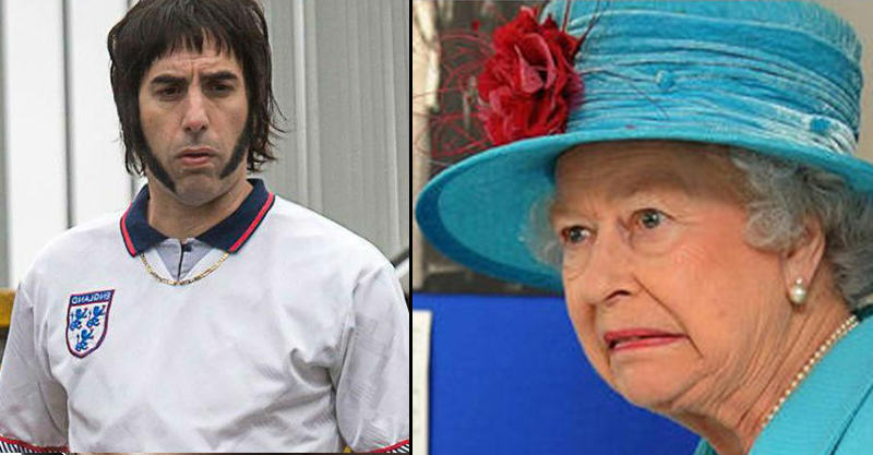 Sacha Baron Cohen’s latest movie about football hooligans from Grimsby features a storyline in which the Queen of England is infected with the HIV virus.