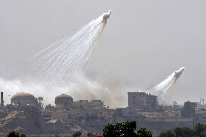 RT reports: Two F-15 jets on Saturday bombed the town of Hajin with white phosphorus incendiary munitions, banned under the Geneva Convention, according to the Russian Center for Reconciliation in Syria.