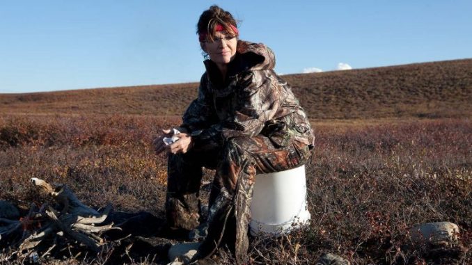 The picture is from December 2014, when Ms Palin was promoting her reality television show “Amazing America With Sarah Palin”.