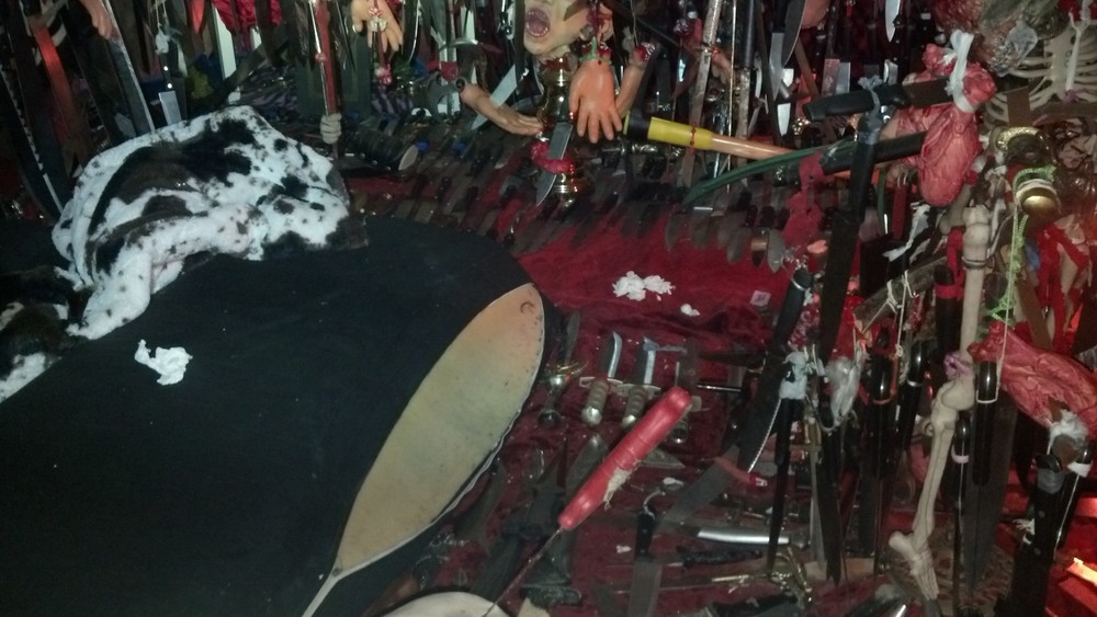 Police officers in Florida who entered the home of 47-year-old Nickcole Dykema, were surprised to find a Satanic altar comprising of 3,714 knives, swords, pentagrams and bones.
