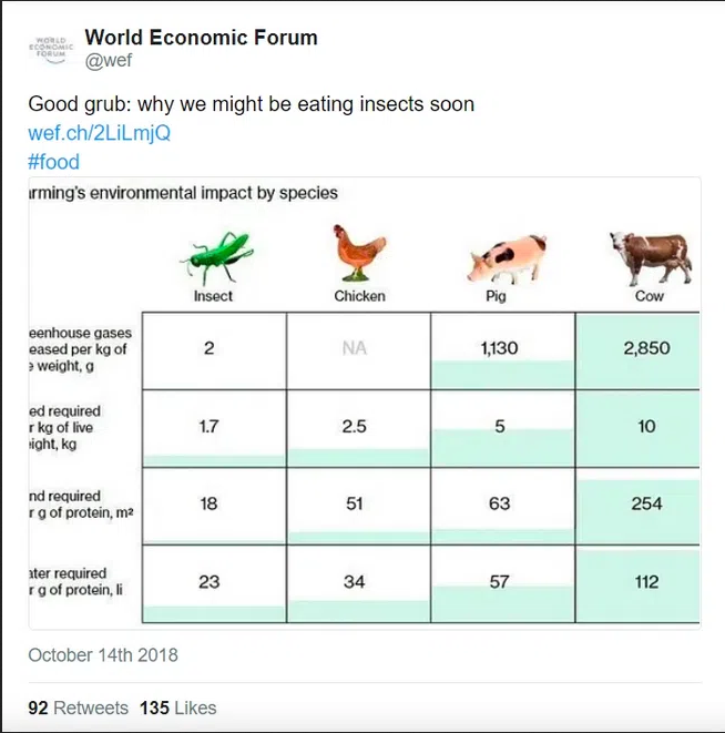 In short, they see us as cattle. Other than controlling every aspect of our lives, they also want us to consume fewer resources. This is where the bug-eating agenda comes in. Using buzzwords such as “sustainability”, the global elite is defining what is a “responsible” diet while increasingly shaming those who eat meat.