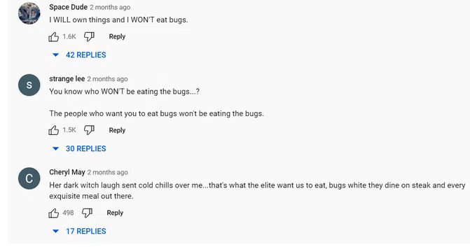 That’s right, an A-list movie star was recruited to seductively consume insects on camera to convince the masses to do the same. This is cringey propaganda 101. Fortunately, the YouTube comments give us hope.