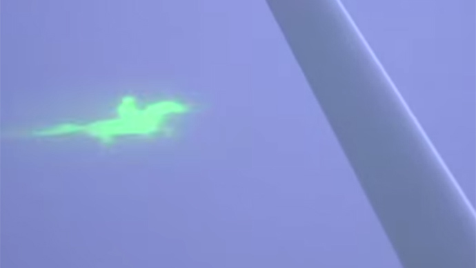 A galloping green horse and it’s green rider appeared in the sky over Nottingham in the UK as scientists tested a newly developed projecting device
