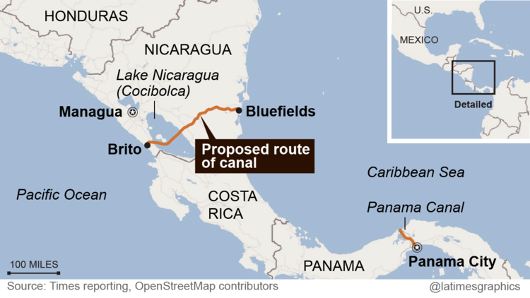 But the Chinese engineers and the people who hired them see something different. They see a $50-billion shipping canal that would divide Nicaragua in two as it traveled from the Pacific to the Caribbean, bisect Central America’s largest lake like an engineering Moses, and dwarf the 100-year-old Panama Canal.