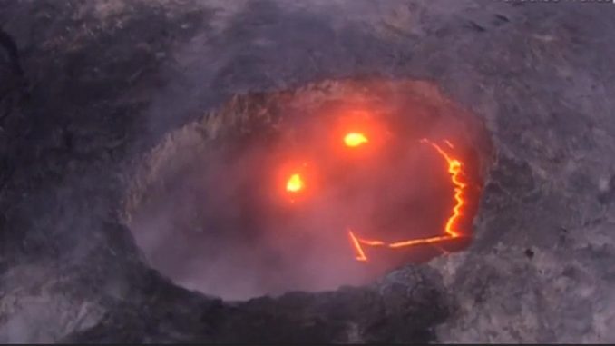 Hawaii’s Kilauea volcano spews fiery lava in the shape of a smiley face.