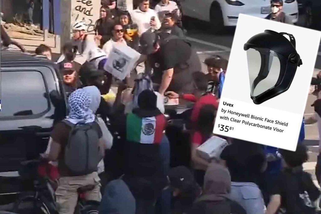 Fox LA anchor Elex Michaelson wrote on X: “We just saw people arrive in Downtown L.A. with truck loads of Bionic Face Shields that demonstrators quickly grabbed. It certainly seems like gear you’d wear if you’re preparing for conflict with police. Who is funding this?”