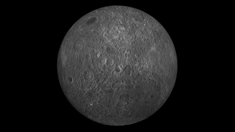 Though it is incredibly vast, it can’t be seen from Earth because it is on the far side of the Moon, which faces away from us at all times.