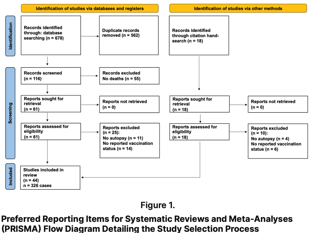 “We searched PubMed and ScienceDirect for all published autopsy and organ-restricted autopsy reports relating to COVID-19 vaccination up until May 18th, 2023. All autopsy and organ-restricted autopsy studies that included COVID-19 vaccination as an antecedent exposure were included. Because the state of knowledge has advanced since the time of the original publications, three physicians independently reviewed each case and adjudicated whether or not COVID-19 vaccination was the direct cause or contributed significantly to death,” the study said in the ‘Methods’ section.