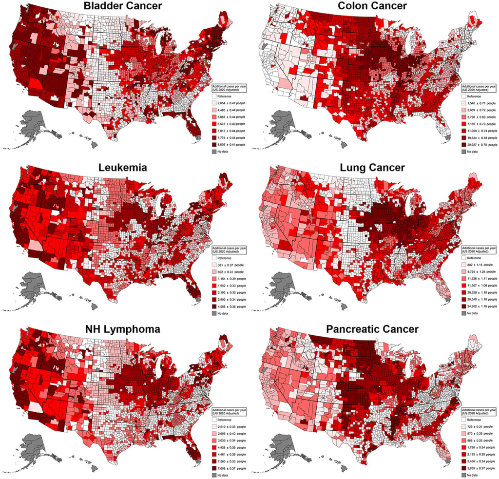 “…we produced national maps that represent the contrast of regions with the pesticide use associated with higher added cancer risk using the lowest region as a reference. In these maps, we highlight shocking estimates of additional cancer cases per year adjusted to the total population of the United States,” the study said in the ‘Results’ section.