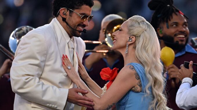 From 8:15 p.m. to 8:29 p.m. ET — the period covering Bad Bunny’s performance — total viewership fell to 128.2 million, including 123.4 million on NBC and 4.8 million on Telemundo.