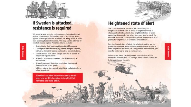 The online version of the booklet, available in 13 languages, can be found on a website designed “for those who want to monitor the development and planning of Sweden’s total defense.”