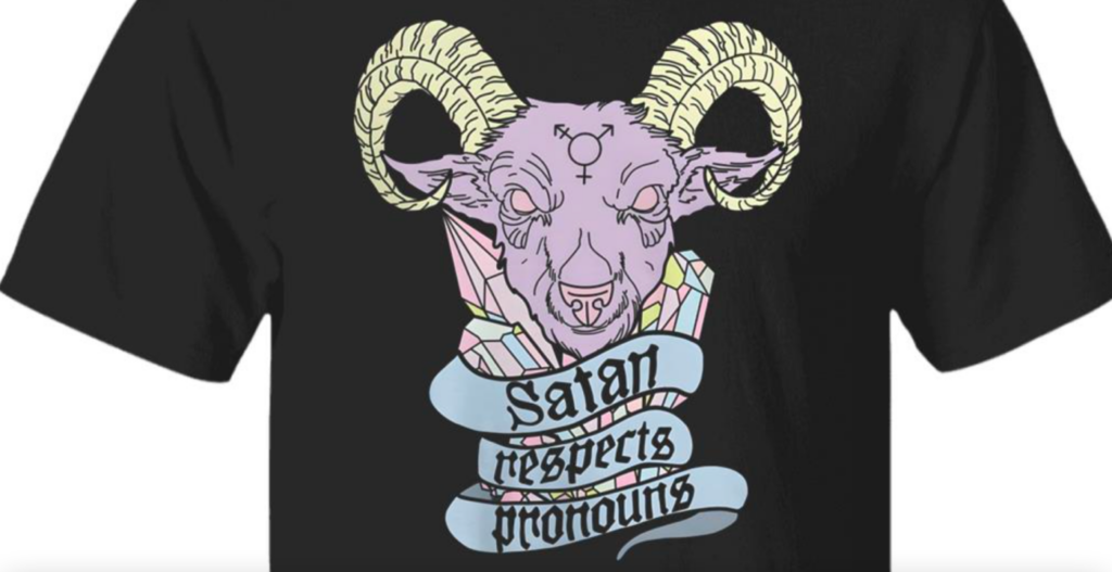 "Satan is hope, compassion, equality, and love. So, naturally, Satan respects pronouns. He loves all LGBTQIA+ people. I went with a variation of Baphomet for this design, a deity who themself is a mixture of genders, beings, ideas, and existences. They reject… pic.twitter.com/fsB4mNAQI7