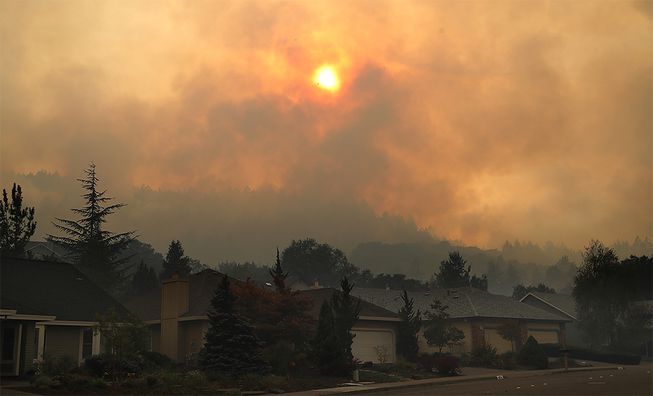 The wildfire in California has generated so much smoke that it is now blotting out the sun and cities are steeped in the dangerous clouds of smoke.