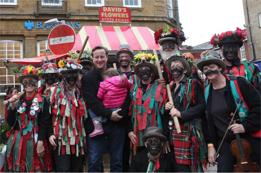 Welcome to 2014. Here is Britain’s prime minister posing with some blacked-up Morris dancers