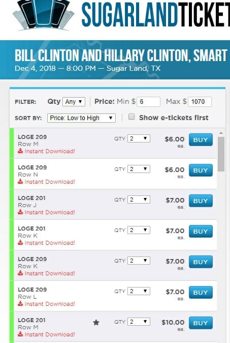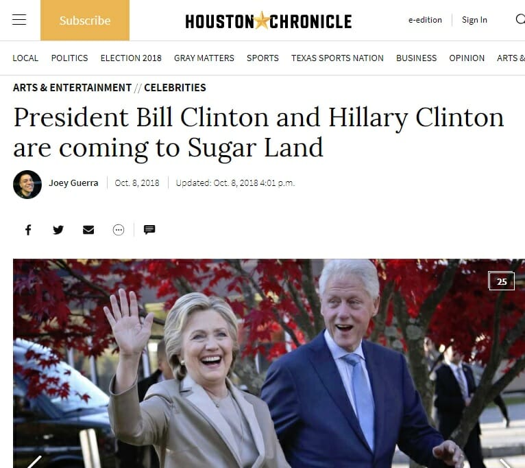 Thegatewaypundit.com reports: The Clintons will appear Tuesday December 4th at Smart Financial Centre at Sugar Land.