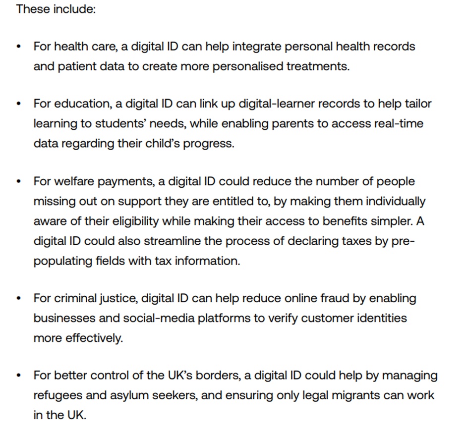 Chapter 3 section 3 of the ‘The Economic Care for Reimaging the State’ report relates specifically to digital ID.  Within the digital ID section, it notes that released alongside the report was a “new TBI analysis” titled ‘The Economic Case for a UK Digital ID’.  The analysis states: