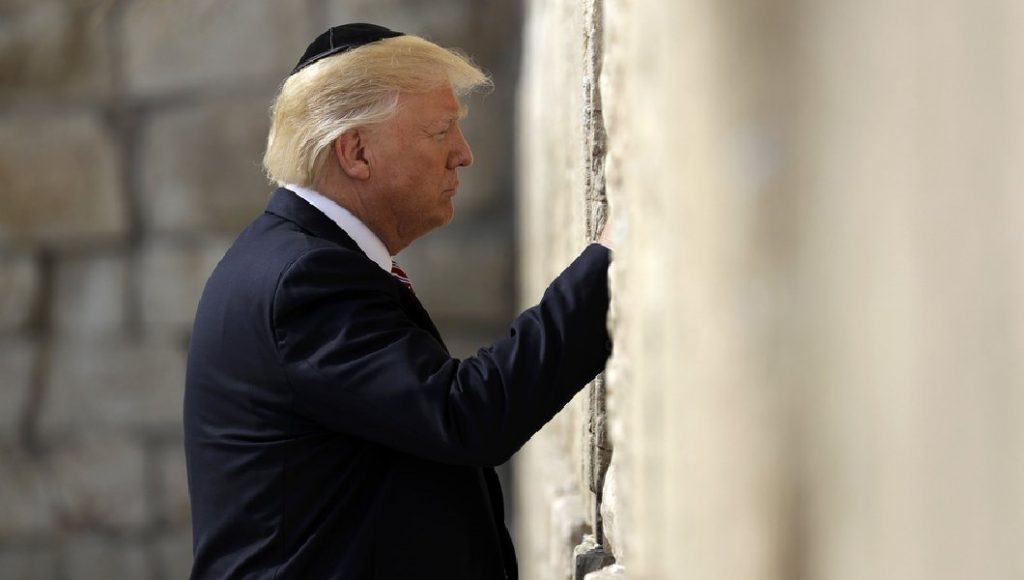 In Jerusalem later on in the day, Trump placed his hand on the Western Wall and prayed at the site in a historic first for a US president.
