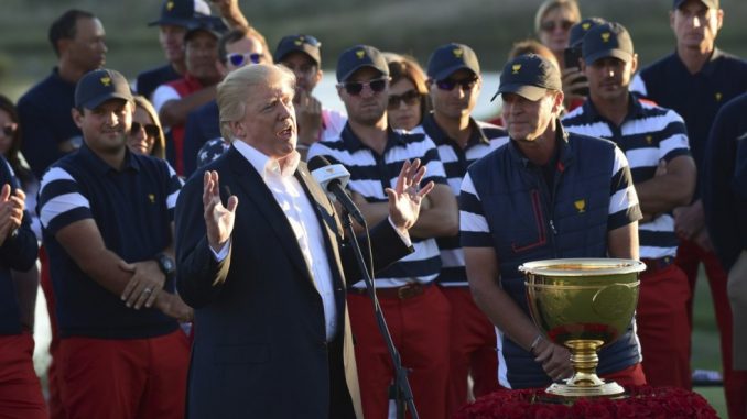 During a presentation ceremony following the Presidents Cup golf tournament in New Jersey on Sunday, Trump said:
