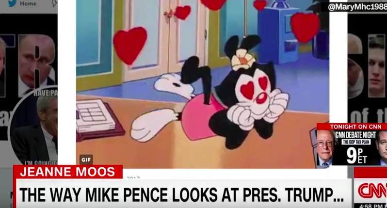 On Wednesday, CNN’s Jeanne Moos released a video report on how Vice-President Mike Pence ‘adoringly gazes’ at President Trump.
