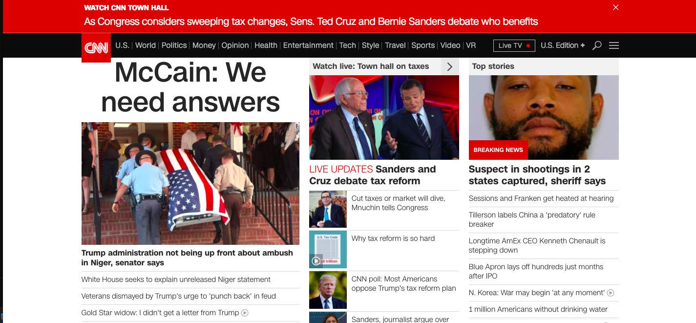 At 10:26 pm est, CNN’s homepage does not show any reports on the scandal. A search with the keywords “FBI” and “bribe” failed to yield the report either.