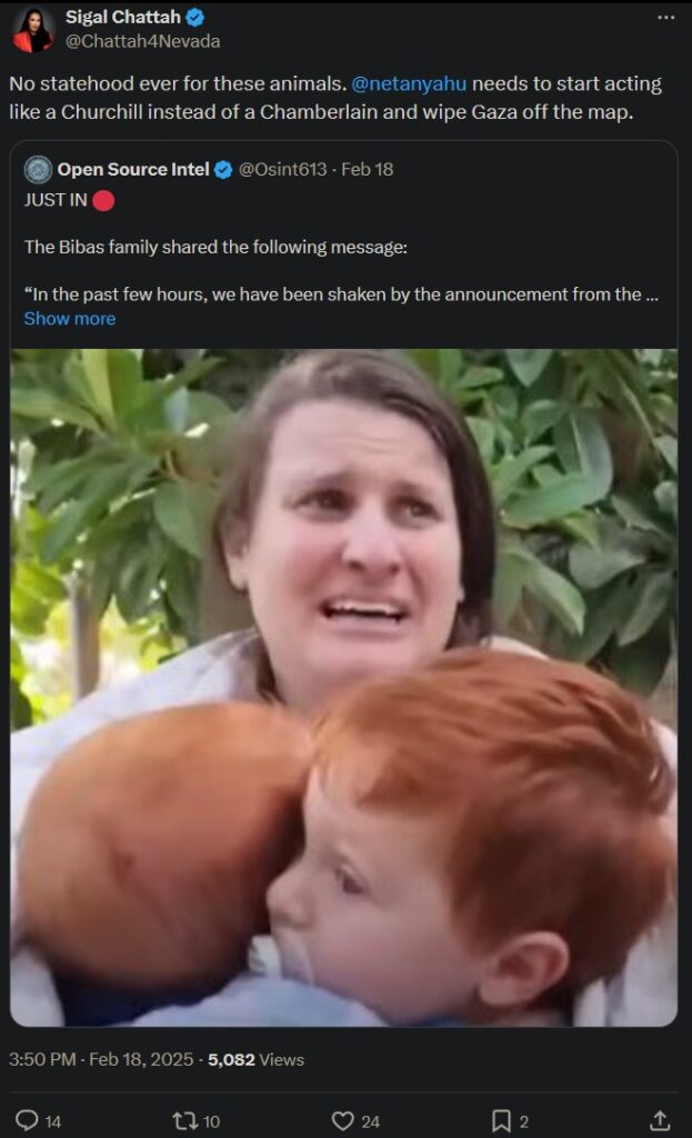Abunimah also shared a post highlighting Chattah’s Israel First bias:
