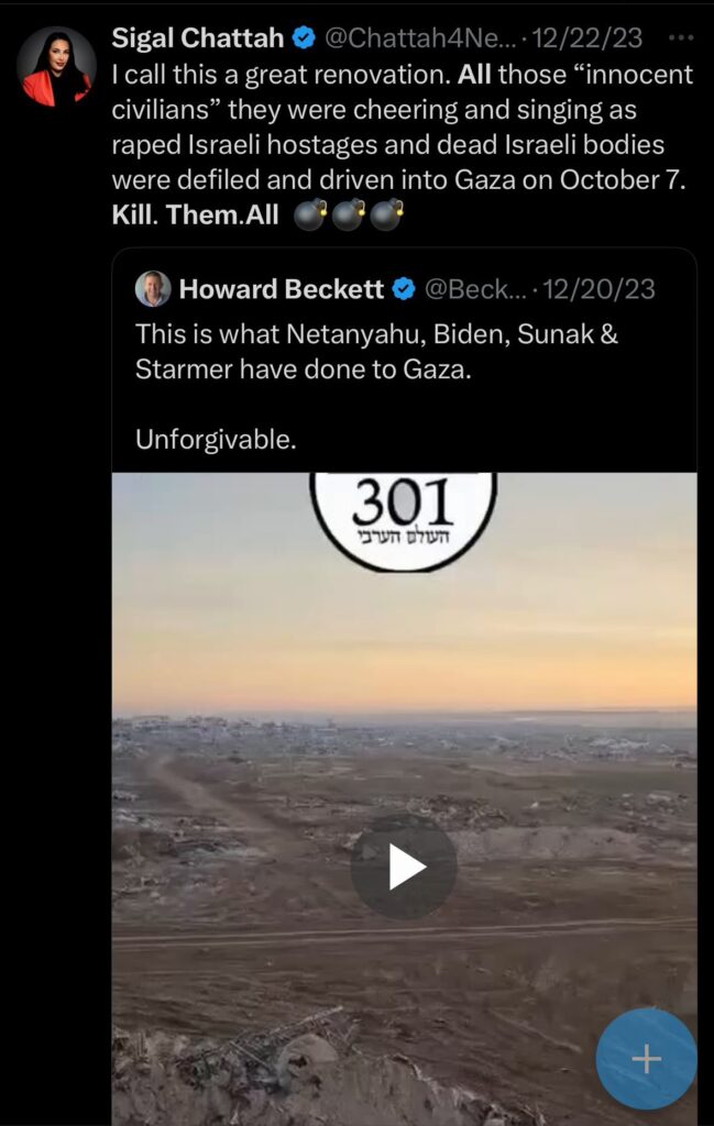 [UPDATE: Sigal Chattah just deleted her entire personal account. The quoted post above and more are archived below.]
