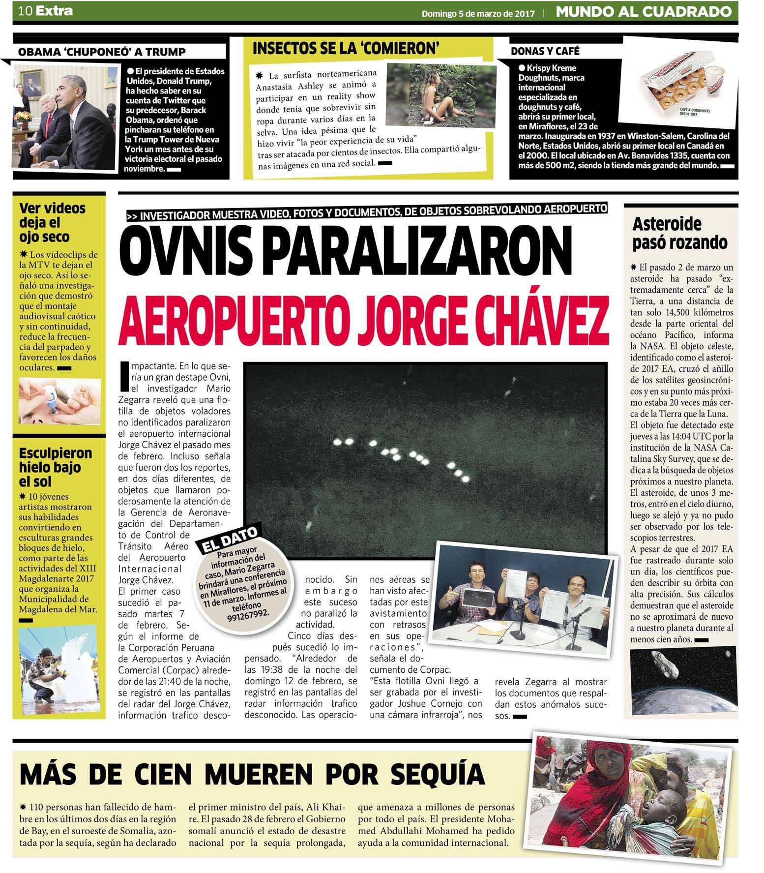 He and Zegarra claim that these twelve objects are the same ones that showed up on the airport’s radar system, and are responsible for the suspension of outgoing and incoming flights. According to Cornejo, the objects were not easily visible to the naked eye.