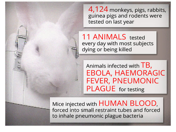 Animal rights group Cruelty Free International claim details of these warfare experiments are not included in annual animal-testing statistics published by the Home Office meaning many people will have no idea the suffering is taking place.