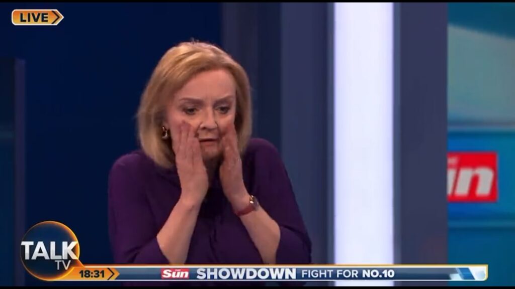 A double vaccinated and boosted British TV presenter collapsed live on air as she hosted a debate between two politicians vying to become the UK’s next prime minister.