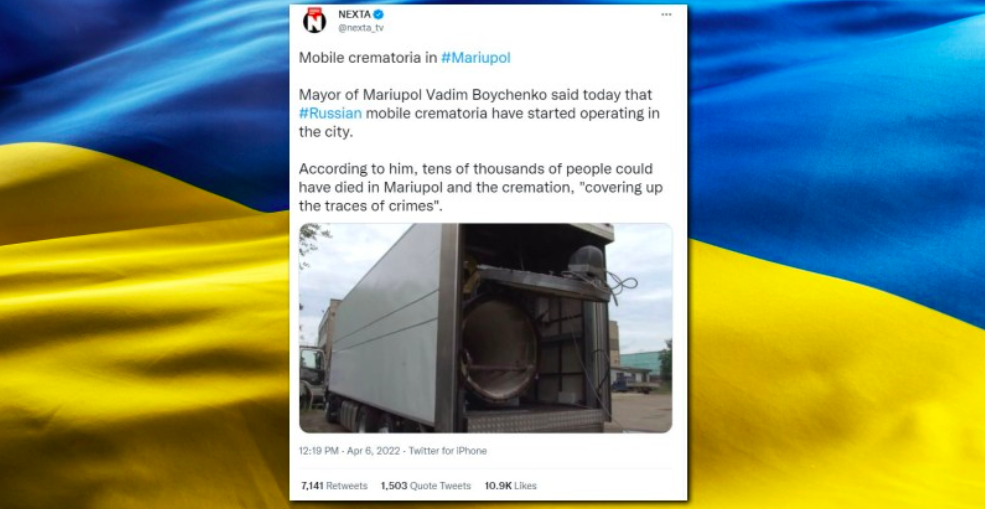 “Mobile crematoria in #Mariupol,” states the tweet.